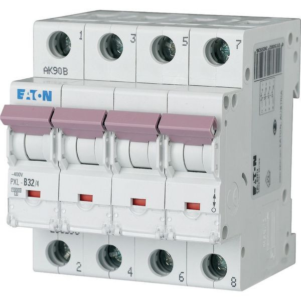 Leitungsschutzschalter, PXL, 4-polig, Auslösecharakteristik: B, Bemessungsstrom Ein: 32 A, Bemessungsschaltvermögen nach IEC/EN 60898-1: 10 kA, Schaltgeräte für den Wohnungsbereich und kommerzielle Anwendungen