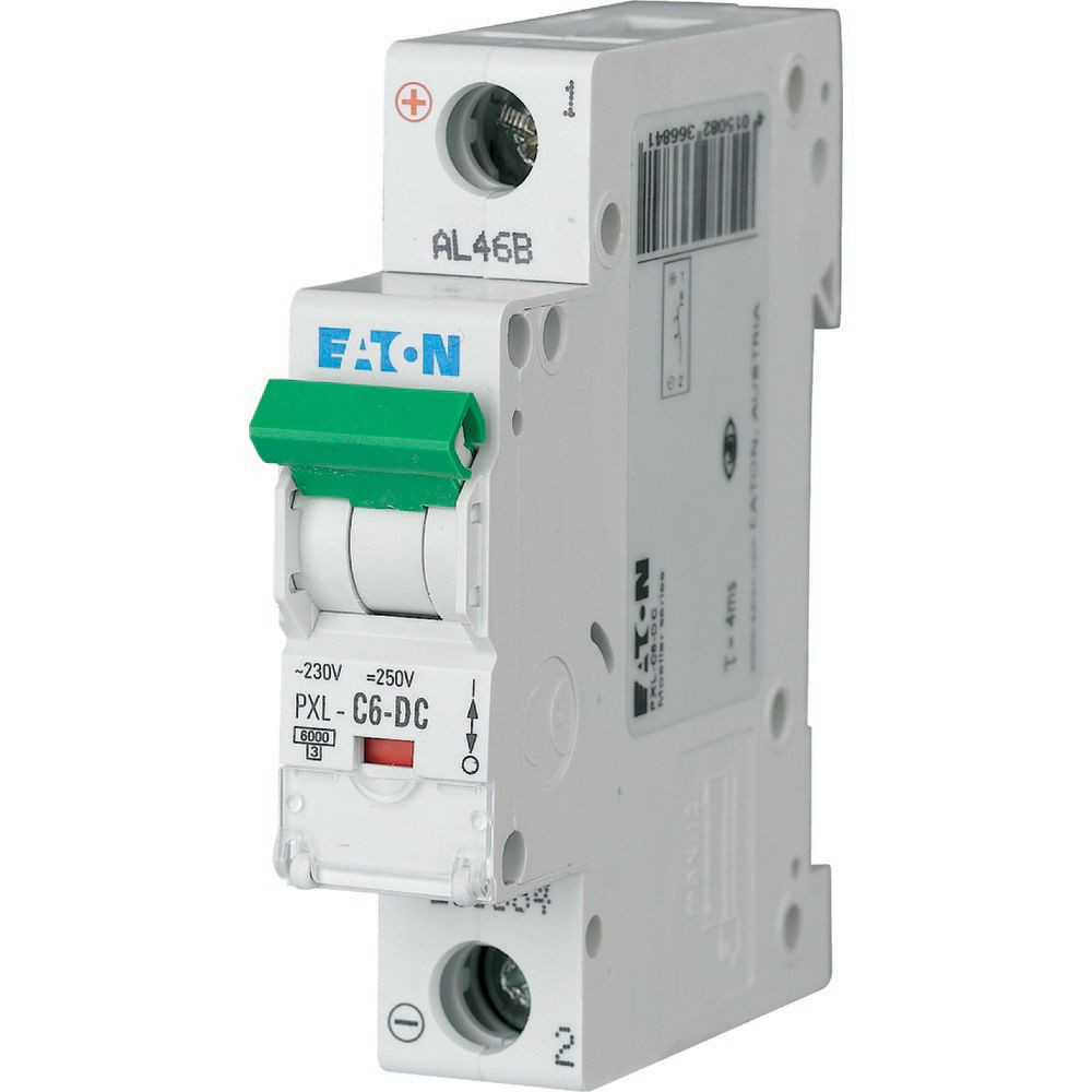 Leitungsschutzschalter, PXL, 1-polig, Auslösecharakteristik: C, Bemessungsstrom In: 6 A, Bemessungsschaltvermögen nach IEC/EN 60898-1:, Schaltgeräte für den Wohnungsbereich und kommerzielle Anwendungen