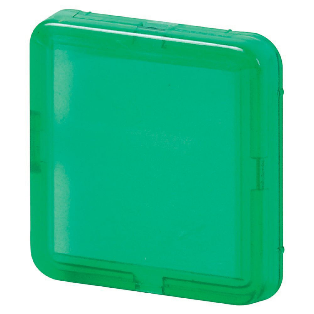 Diese grüne, flache Linse passt auf die Blinkleuchten RMQ16 mit 25x25 mm Frontmaß