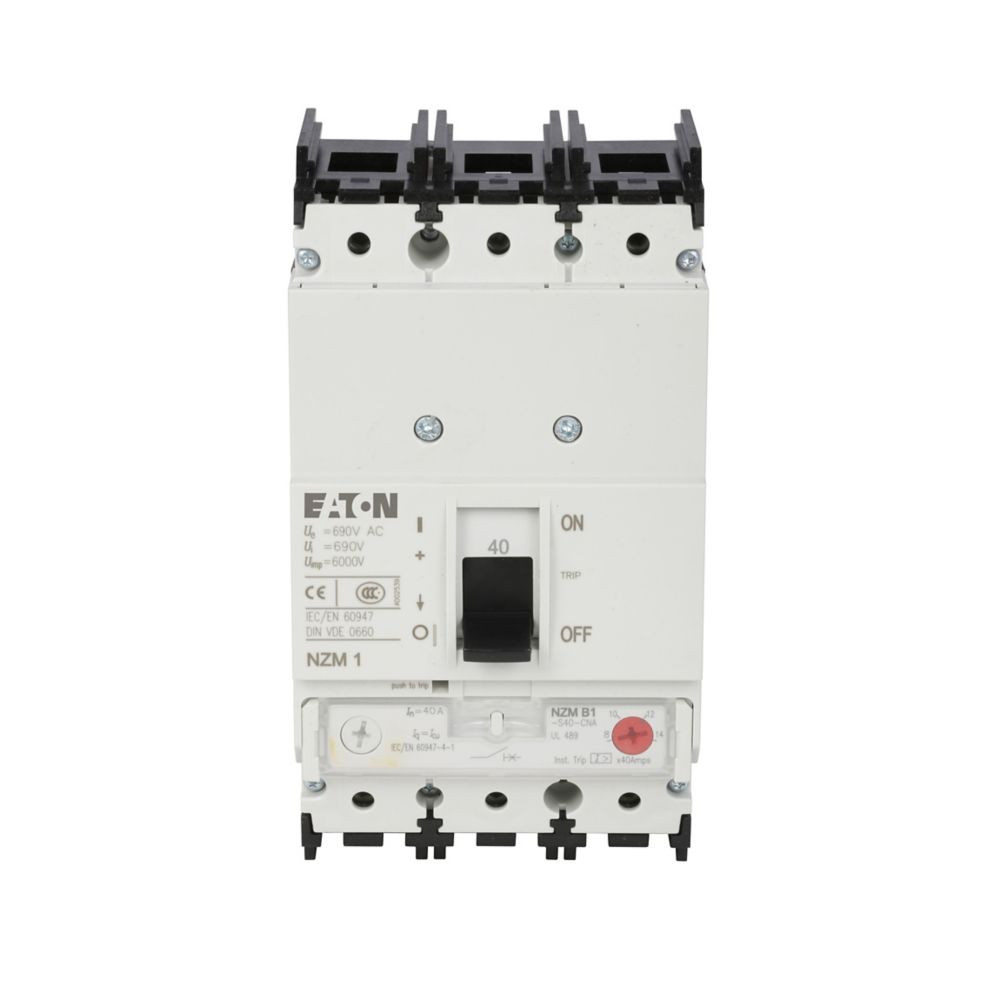 Leistungsschalter NZM1, 3-polig, Schaltvermögen SCCR 480 V 60 Hz( Icu ): 25 kA, Bemessungsstrom = Bemessungsdauerstrom (In = Iu): 50 A, Installationsart: Festeinbau, Rahmenklemme, Standard/Genehmigung: UL/CSA, IEC, Schutzfunktion: Anlagen- und Kabelschutz
