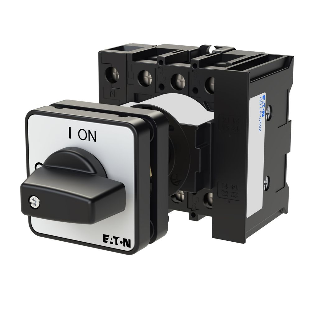 | Kurzbeschreibung | EIN-AUS-Schalter, P1, 25 A, Zwischenbau, 3-polig + N, 1 S, 1 Ö, mit schwarzem Knebel und Frontschild |
