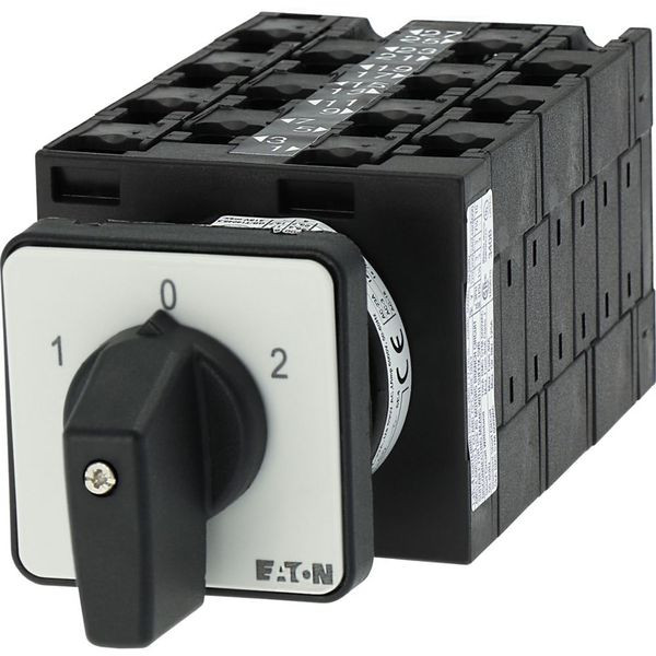 Umschalter, Handelsname: T3, Bem.betriebsstrom (le) bei AC-21, 440 V: 32 A, Montageart: Einbau, Anzahl Baueinheiten: 7, Schaltwinkel: 60°, Betätigungsfunktion: Mit 0-(Aus)-Position, rastend, Schutzart: NEMA 1, NEMA 12, IP65, Aufdruck: 1-0-2, Designnummer: 8363