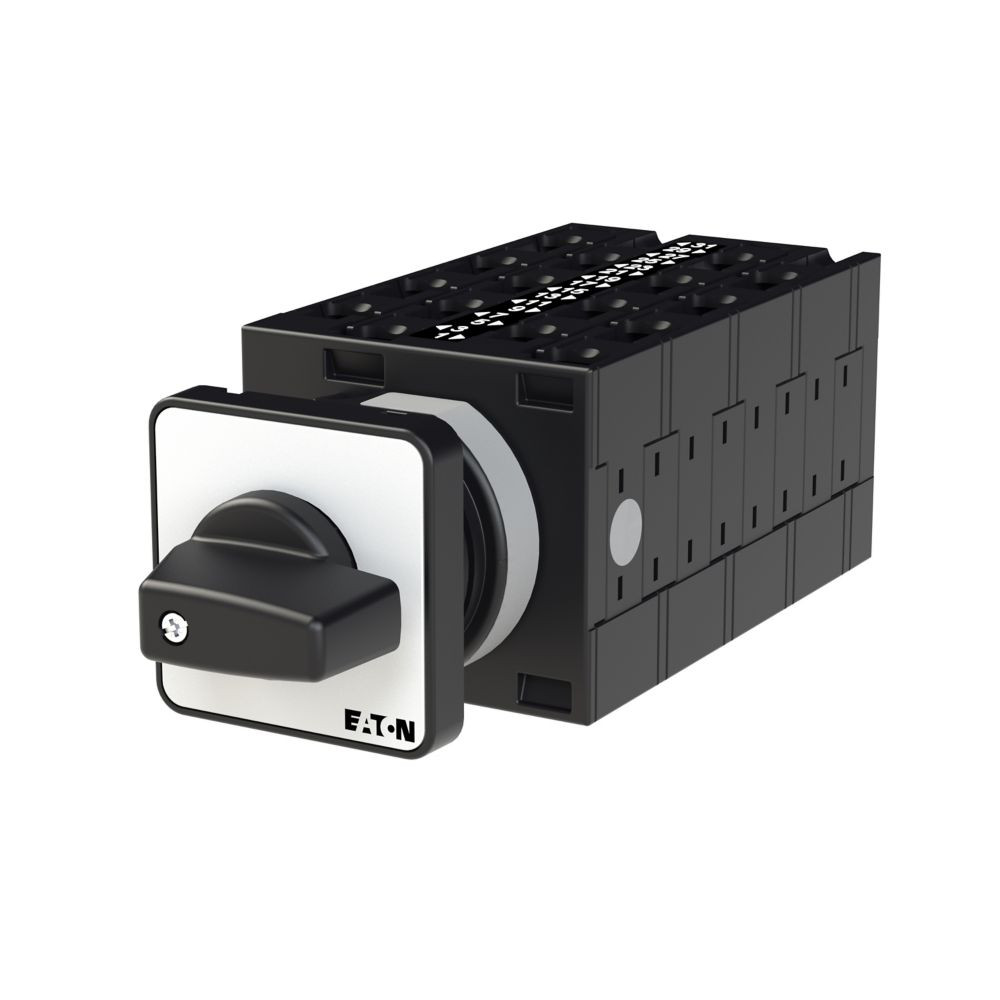 Stufenschalter, Sortiment: Steuerschalter, Normen und Bestimmungen: IEC/EN 60947, VDE 0660, IEC/EN 60204, CSA, UL, Lasttrennschalter nach IEC/EN 60947-3, Typkenner: T3, mit schwarzem Knebel und Frontschild, Kontakte: 15, Schutzart: Front IP65, Bauform: Einbau, Schaltwinkel: 45 °, Schaltverhalten: rastend, ohne 0-Stellung, 8 Baueinheit(en), Bemessungsdauerstrom: Iu= 32 A, Frontschild: 1-5