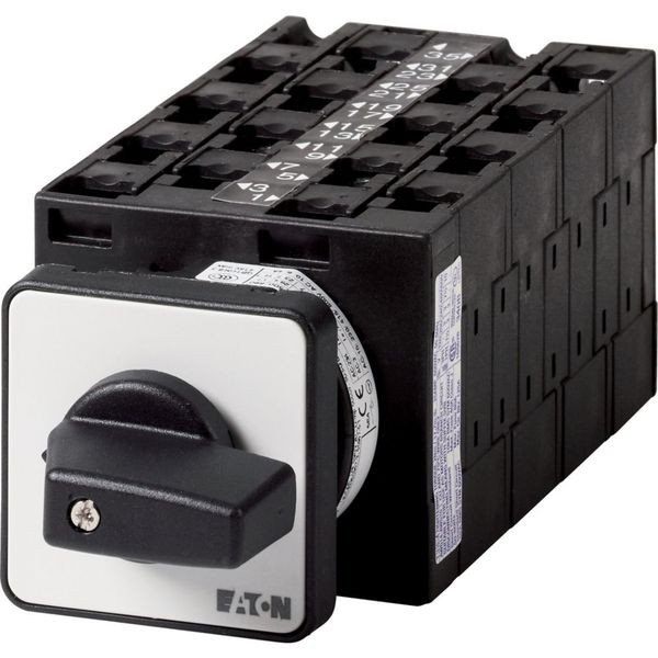 Wende-Polumschalter, Handelsname: T3, Bem.betriebsstrom (le) bei AC-21, 440 V: 32 A, Montageart: Einbau, Anzahl Baueinheiten: 8, Schaltwinkel 60°, Betätigungsfunktion: rastend, Mit 0-(Aus)-Position, Schutzart: NEMA 12, IP65, NEMA 1, Aufdruck: 1-Y-0-Y-2, Designnummer: 8454