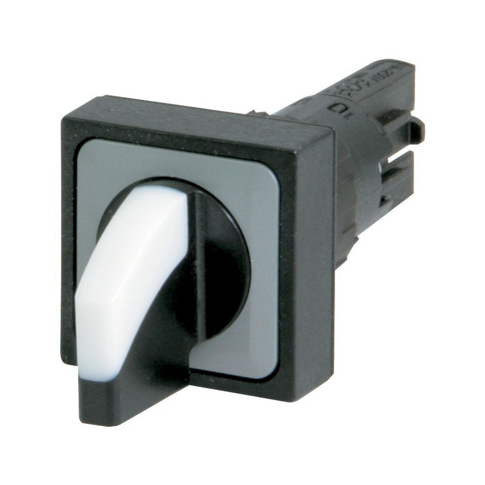 Umschalter, Sortiment: RMQ16, Einzelgerät, Design: mit Knebelgriff, rastend/tastend, mit VS Verdrehschutz, 3 Stellungen, Farbe Knebelgriff: Weiß, Schutzart: IP65, ohne Frontring, Anbindung an SmartWire-DT: nein, Frontabmessung: Frontabmessung 25 × 25 mm, Schutzart: IP65