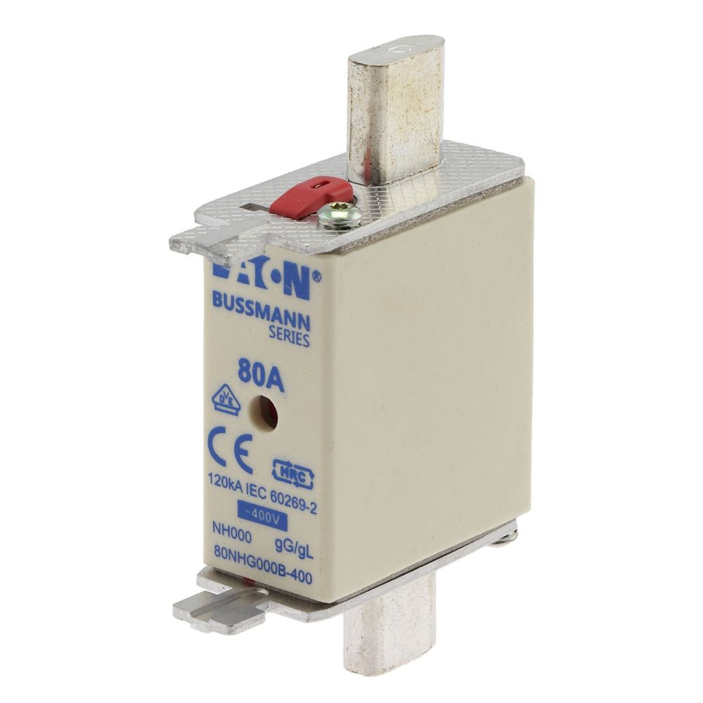 | Kurzbeschreibung | Fuse-link, LV, 80 A, AC 400 V, NH000, gL/gG, IEC, dual indicator, live gripping lugs |