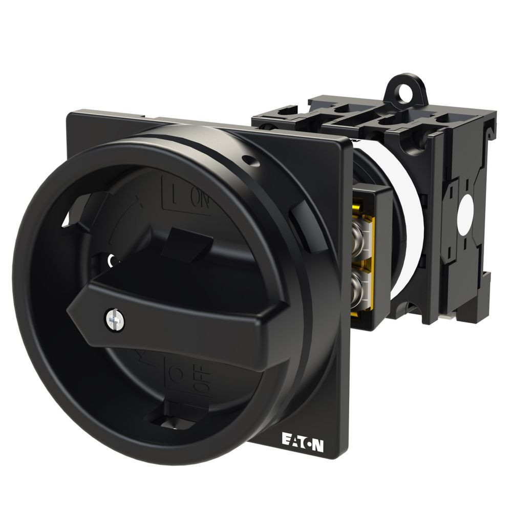 Hauptschalter, Sortiment: Hauptschalter, Wartungsschalter, Reparaturschalter, Typkenner: T0, Stopp-Funktion: STOPP-Funktion, mit schwarzem Drehgriff und Sperrkranz, 4-polig, Schutzart: Front IP65, Bauform: rückseitiger Einbau, Schaltwinkel: 90 °, Bemessungsbetriebsleistung AC-23A, 50 - 60 Hz 400 V: P = 5,5 kW, Bemessungsdauerstrom: Iu = 20 A, 2 Baueinheit(en), Normen und Bestimmungen: IEC/EN 60947, VDE 0660, IEC/EN 60204, CSA, UL, Lasttrennschalter nach IEC/EN 60947-3