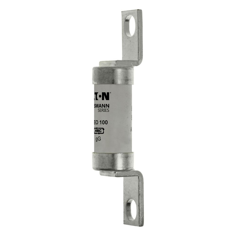 Sicherung, 100 A, 500 V AC, BS88/A4, 25 x 110 mm, gL/gG, BS, gekröpfte verschraubte Anschlussfahnen, allgemeine industrielle Anwendungen, BS88-2, IEC 60269-2, Ausschaltvermögen 80 kA, Optionales Zubehör Sicherungshalter RS100H