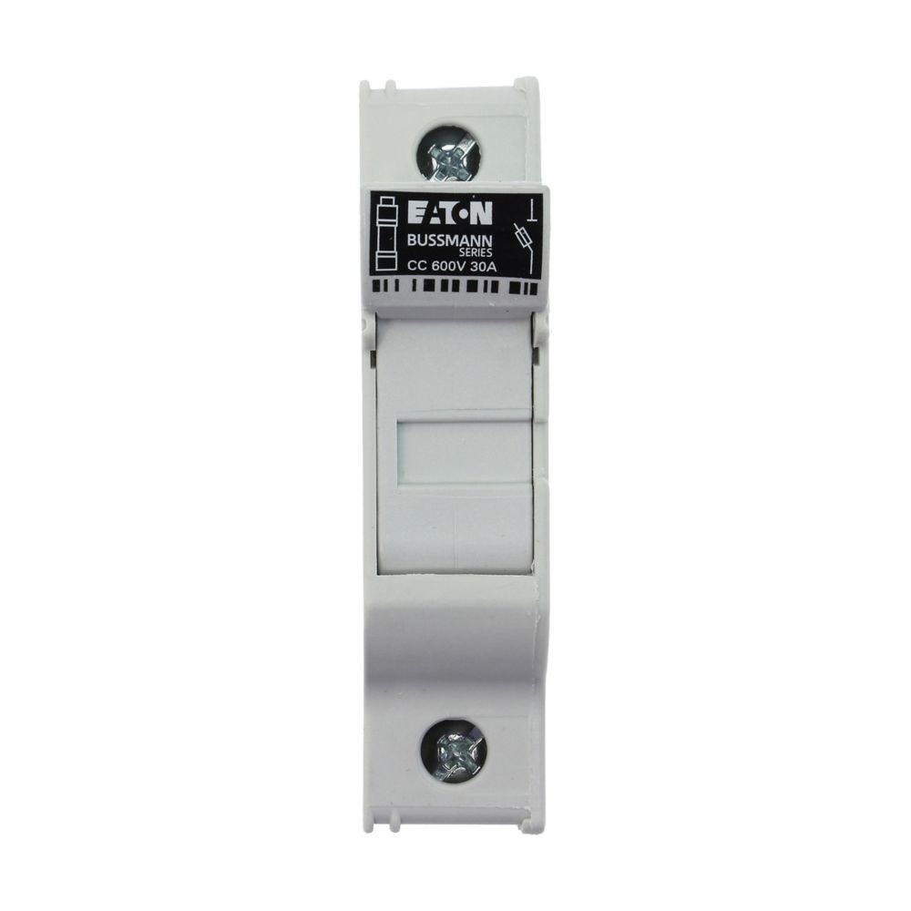 Sicherungszubehör, Sicherungshalter, Niederspannung, 30 A, AC 600 V, 10 x 38 mm, Class CC, 1P, UL, DIN-Schienenmontage, modular, farbcodiert. Ausgelegt zur Verwendung mit Drähten für 75°C oder 90°C, dünnen Litzen, Flachsteckern und Kamm-Busschienen. Verwendung von Leitungen mit höherer Temperaturbemessung bei entsprechender Leitungsverringerung. Für zylindrische Sicherungseinsätze, IEC, cULus, CCC,CSA,UR