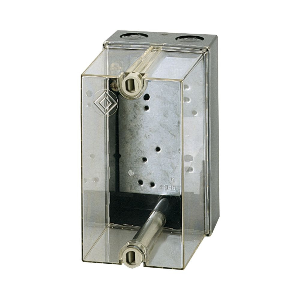 Leergehäuse, Deckel transparent, metrische Vorprägungen oben und unten, mit PEN-Klemme, Einzelgehäuse IP55, ohne Lochplatte