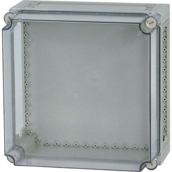 Leitungseinführung: oben und unten verschließbar durch Flansche FL... Basisgehäuse Stromverteiler, Material: Polycarbonat, schlagfest, Schutzart IP65, patentierter Deckelverschluss mit integriertem Überdruckausgleich, Gehäuseseitenwände geschlossen, ausschlagbar, oben und unten offen, plombierbare Deckelverschlüsse, RAL 7035, Grau (Sockel), transparent rauchgrau, (Abdeckung), Einbautiefe bei Montageplatte=200mm, Abdeckungstyp: transparent rauchgrau, Ausführung Unterteil: oben und unten offen