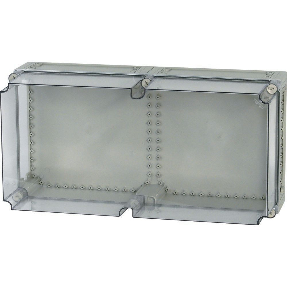 Leitungseinführung: oben und unten verschließbar durch Flansche FL... Basisgehäuse Stromverteiler, Material: Polycarbonat, schlagfest, Schutzart IP65, patentierter Deckelverschluss mit integriertem Überdruckausgleich, Gehäuseseitenwände geschlossen, ausschlagbar, oben und unten offen, plombierbare Deckelverschlüsse, RAL 7035, Grau (Sockel), transparent rauchgrau, (Abdeckung), Einbautiefe bei Montageplatte=250mm, Abdeckungstyp: transparent rauchgrau, Ausführung Unterteil: oben und unten offen