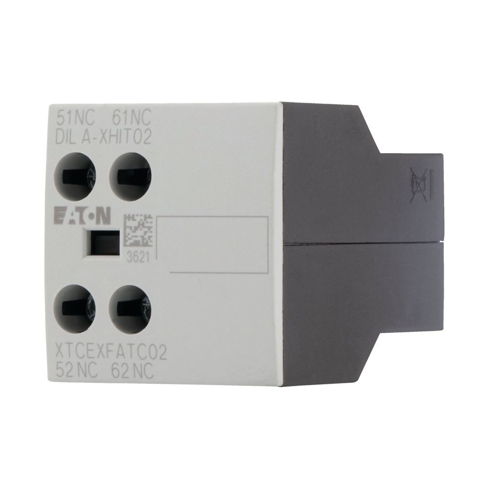 Hilfsschalterbaustein, mit zwangsgeführten Kontakten, Schaltglieder nach EN 50005, Kombinationen der Ausführung E entsprechen EN 50011 und sind zu bevorzugen. Gleichstrombetätigte Schütze DILA(C)-22 dürfen nur mit 2-poligen Hilfsschaltern kombiniert werden. Funktion: für Kombination mit Verdrahtungsbrücken, 2-polig, Anschlusstechnik: Schraubklemmen, Bemessungsbetriebsstrom AC-15 220 V 230 V 240 V: Ie= 4 A, Bemessungsbetriebsstrom AC-15 380 V 400 V 415 V: Ie= 4 A, Kontakte Ö = Öffner: 2 Ö, Montagetyp: Frontbefestigung, verwendbar für: DILM7…, DILM9…, DILM12…, DILM15…, DILL…, MSC-D…M7(9, 12, 15)…, MSC-R…M7(9, 12)
