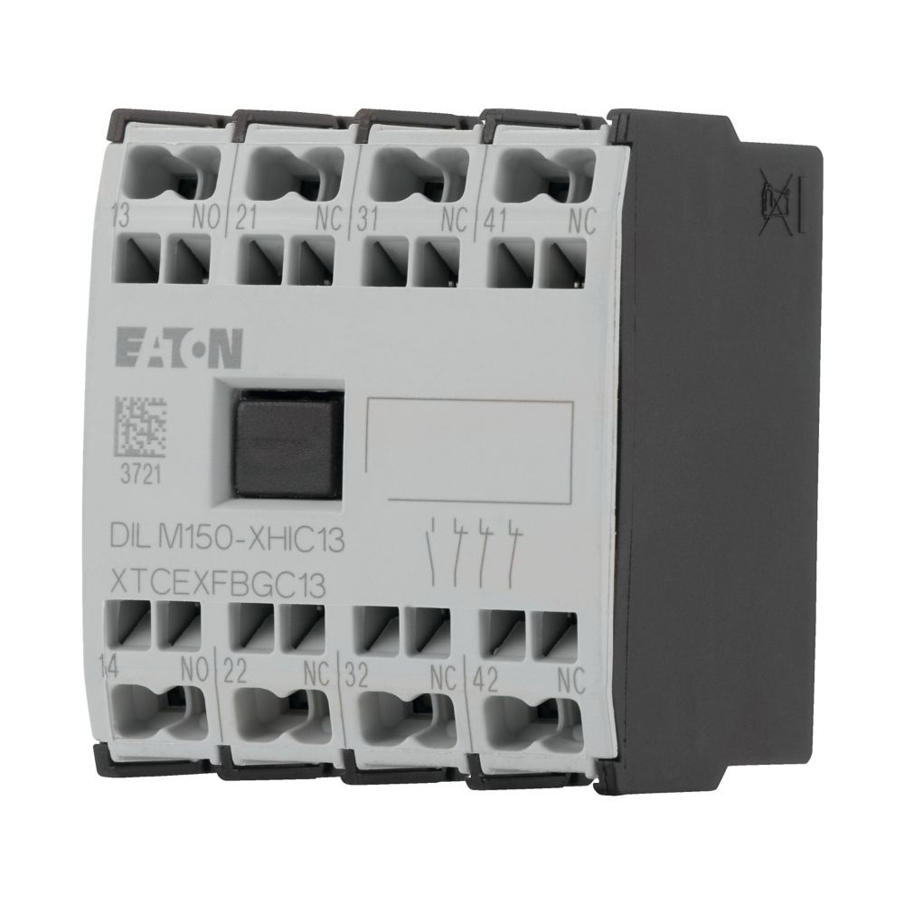 Hilfsschalterbaustein, mit zwangsgeführten Kontakten, Funktion: für Standardanwendungen, 4-polig, Anschlusstechnik: Federzugklemmen, Bemessungsbetriebsstrom AC-15 220 V 230 V 240 V: Ie= 6 A, Bemessungsbetriebsstrom AC-15 380 V 400 V 415 V: Ie= 4 A, Kontakte S = Schließer: 1 S, Kontakte Ö = Öffner: 3 Ö, Montagetyp: Frontbefestigung, verwendbar für: DILMC40…, DILMC50…, DILMC65…, DILMC80…, DILMC95…, DILMC115…, DILMC150…, Typ: Frontale Hilfsschalterbestückung, Hinweise: Zwangsgeführte Kontakte, nach IEC/EN 60947-5-1 Anhang L, innerhalb des Hilfsschalterbausteins