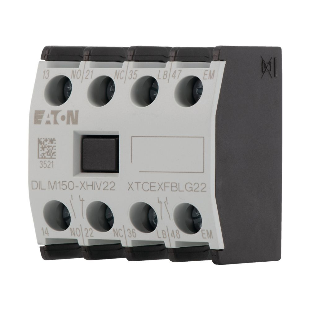Hilfsschalterbaustein, Funktion: für Standardanwendungen, 4-polig, Anschlusstechnik: Schraubklemmen, Bemessungsbetriebsstrom AC-15 220 V 230 V 240 V: Ie= 6 A, Bemessungsbetriebsstrom AC-15 380 V 400 V 415 V: Ie= 4 A, Kontakte S = Schließer: 1 S, Kontaktbestückung SF: Frühschließer: 1 SF, Kontakte Ö = Öffner: 1 Ö, Kontaktbestückung ÖS = Spätöffner: 1 ÖS, Montagetyp: Frontbefestigung, verwendbar für: DILM40…, DILM50…, DILM65…, DILM72…, DILM80…, DILM95…, DILM115…, DILM150…, DILM170…, DILMP63…, DILMP80…, DILMP125…, DILMP160…, DILMP200…, DILMF40…, DILMF50…, DILMF65…, DILMF80…, DILMF95…, DILMF115…, DILMF150…