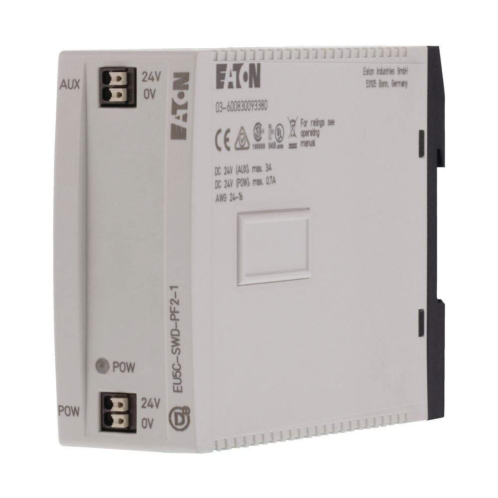 SmartWire-DT-Stromversorgung für SWD-Module und zur zusätzlichen Einspeisung der Steuerspannung für Motorstarter und Leistungsschütze, sowie zur Bildung von Nothaltegruppen