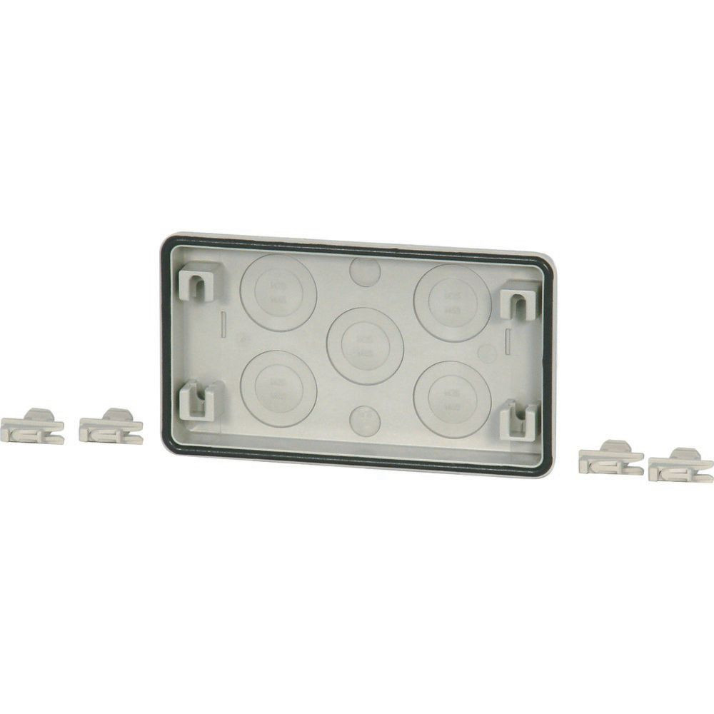 Für Gehäuse CI 23, CI 43 und CI 44 Flansch aus isolierendem Material, Schutzart IP65, Schwammgummi, unverlierbare Dichtung, schnelle Montage mit Keilverbindung (standardmäßig enthalten), für Gehäuseabmessung 250 mm, Leitungseinführung 1xM16, 5xM40/25, RAL 7035