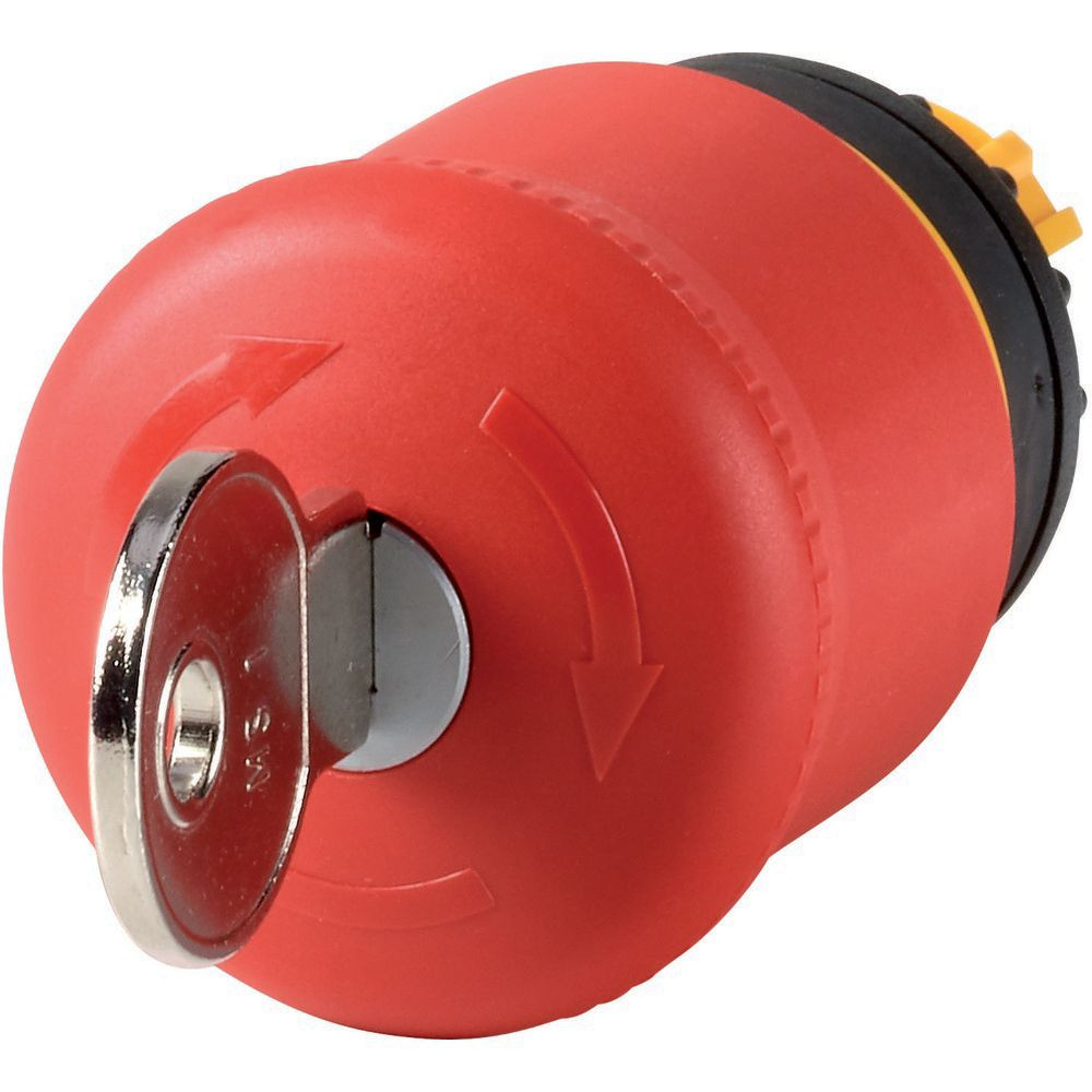| Kurzbeschreibung | NOT-HALT-/NOT-AUS-Taste, RMQ-Titan, Pilzform, 38 mm, unbeleuchtet, Schlüssel-Entriegelung, wählbar, rot, gelb, RAL 3000, nicht schließanlagenfähig |