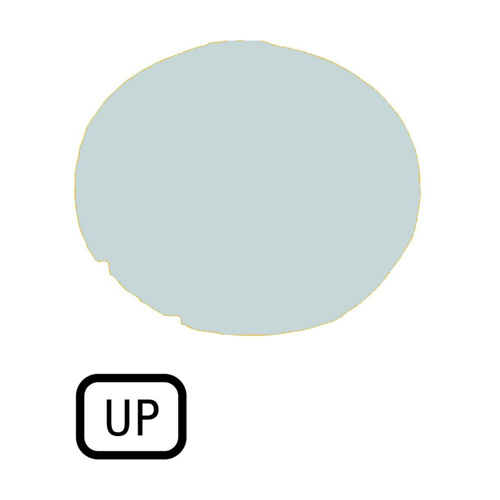 Tastenlinse, Sortiment: Zubehör, Einzelgerät, Beschreibung: 5 Zeichen: Schrifthöhe 5 mm, > 5 Zeichen: Schrifthöhe 3 mm, Bauform: bündig, Beschriftung: UP, Auswahl nach: Beschriftung, verwendbar für: M22(S)-DL-X, M22(S)-DRL-X, M22S-DGL-X, M30C-FDL-X, M30C-FDRL-X, Anbindung an SmartWire-DT: nein