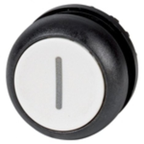 | Kurzbeschreibung | Drucktaste, RMQ-Titan, flach, tastend, weiß, beschriftet, Frontring Schwarz |