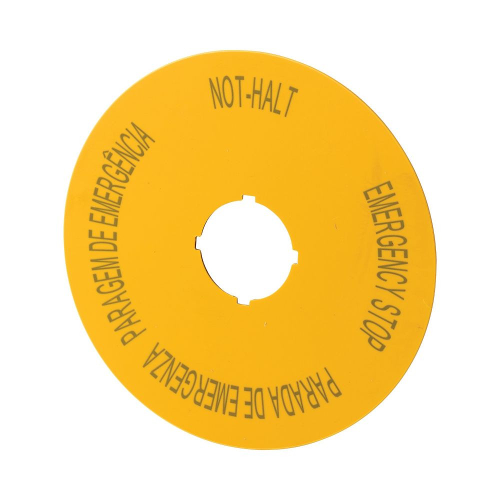 | Kurzbeschreibung | Label, emergency stop, D=90mm, yellow, DE, EN, ES, PT |