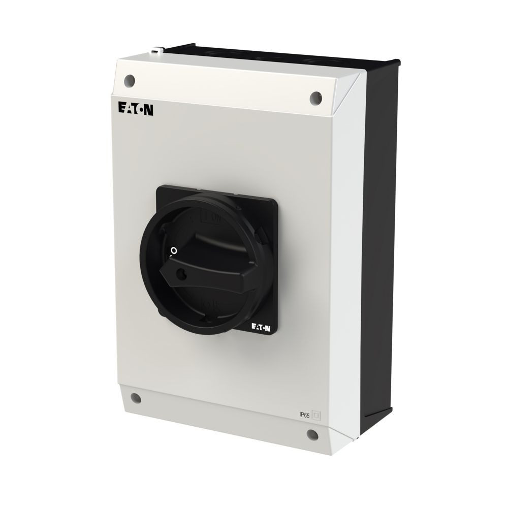 Hauptschalter, Sortiment: Hauptschalter, Wartungsschalter, Typkenner: P3, Stopp-Funktion: STOPP-Funktion, mit schwarzem Drehgriff und Sperrkranz, 3-polig + N, Verriegelungsvorrichtung: In der Position 0 (Aus) verriegelbar, Schutzart: IP65, Bauform: Oberflächenmontage, Bemessungsbetriebsleistung AC-23A, 50 - 60 Hz 400 V: P = 30 kW, Bemessungsdauerstrom: Iu = 63 A, Normen und Bestimmungen: IEC/EN 60947, VDE 0660, IEC/EN 60204, CSA, UL, Lasttrennschalter nach IEC/EN 60947-3