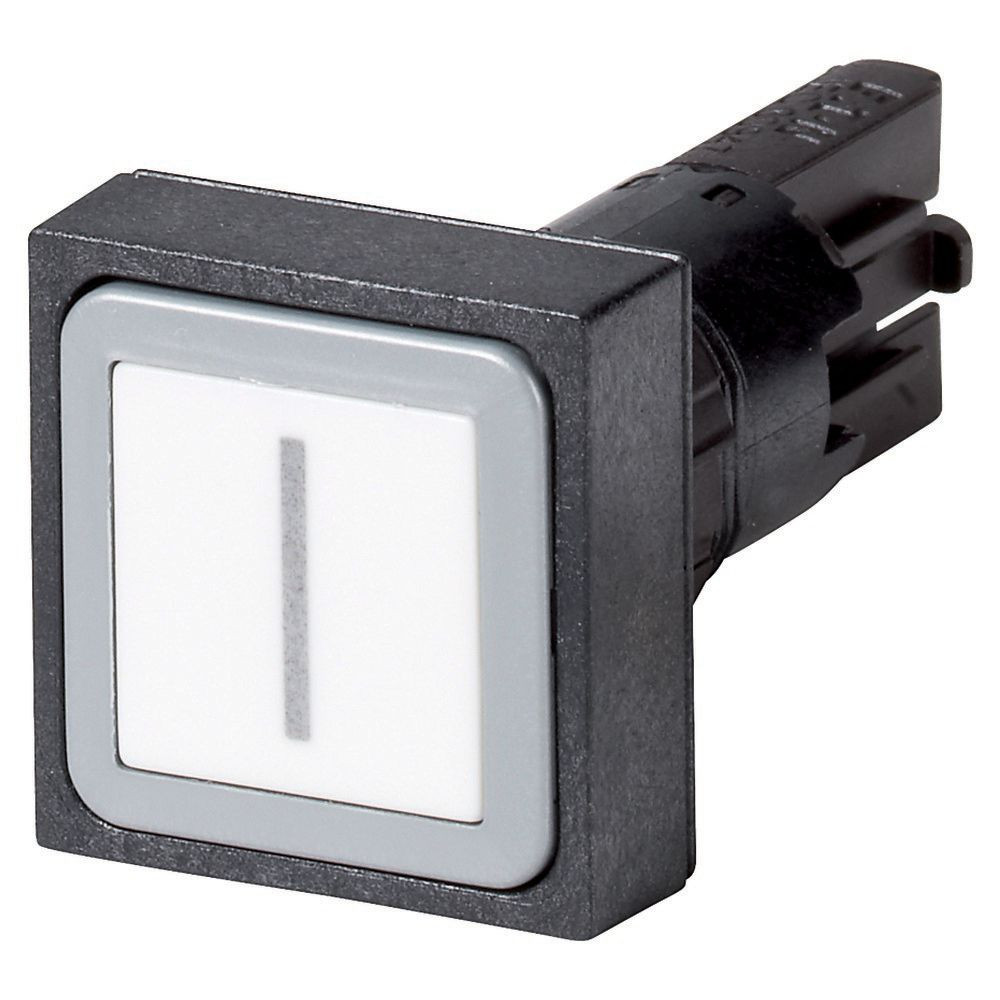 Drucktaste, Sortiment: RMQ16, Einzelgerät, Bauform: flach, tastend, Tastenplatte: weiß, Tastenplatte beschriftet, Schutzart: IP65, ohne Frontring, Anbindung an SmartWire-DT: nein, Frontabmessung: 25 x 25