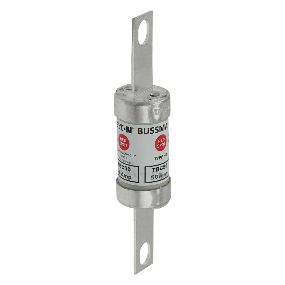 Sicherung, Sicherungseinsatz, Niederspannung, 50 A, AC 660 V, DC 460 V, BS88, 27 x 129 mm, gL/gG, BS, mittenverschraubte Anschlussfahnen, allgemeine industrielle Anwendungen, BS88, IEC 60269, Ausschaltvermögen 80 kA, Zubehör optional Sicherungshalter RS200