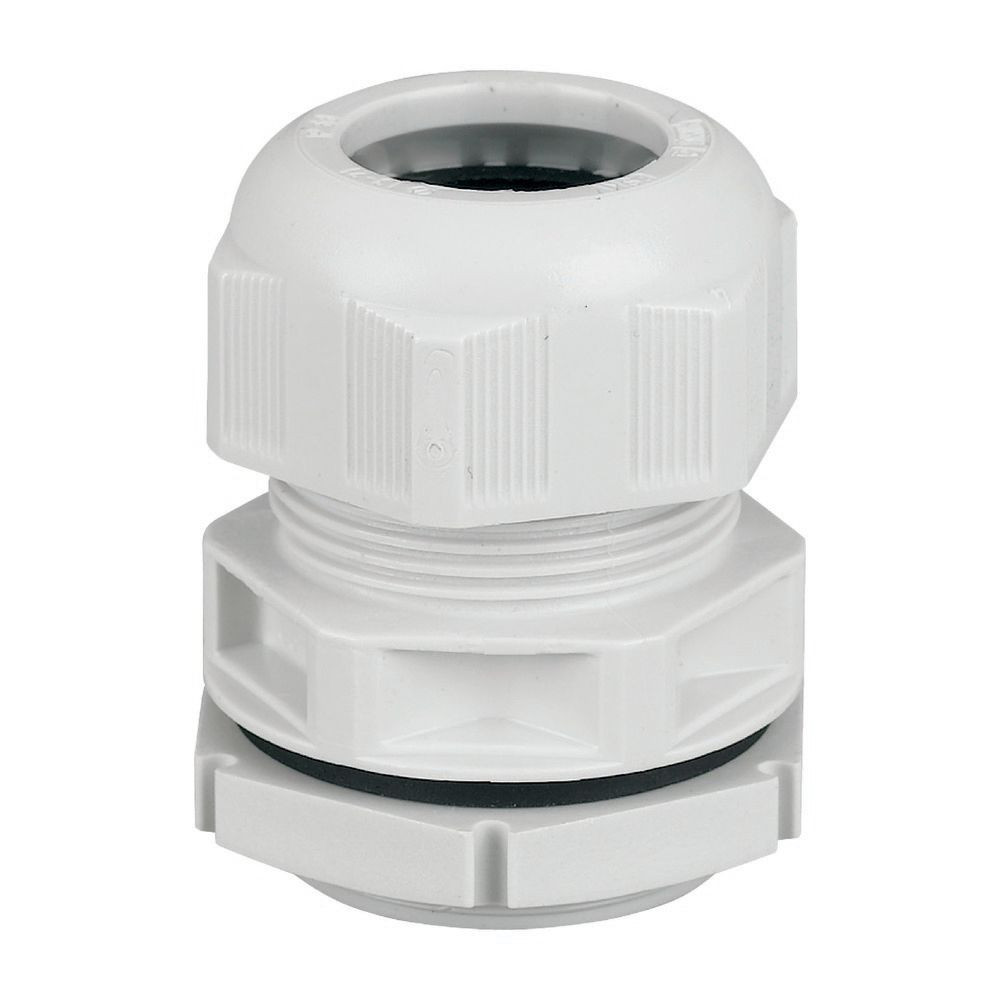 Kabelverschraubung, Kabeleinführung = M32, Bohrmaß = 32,5 mm, Verwendung Kabel NYM/NYY, 4-Draht = NYM 5 x 10 mm², Schutzart IP68 bis 5 bar (30 Minuten), Polyamid, halogenfrei, RAL 7035, mit Kontermutter und integrierter Zugentlastung, Brandklasse V2 nach UL94