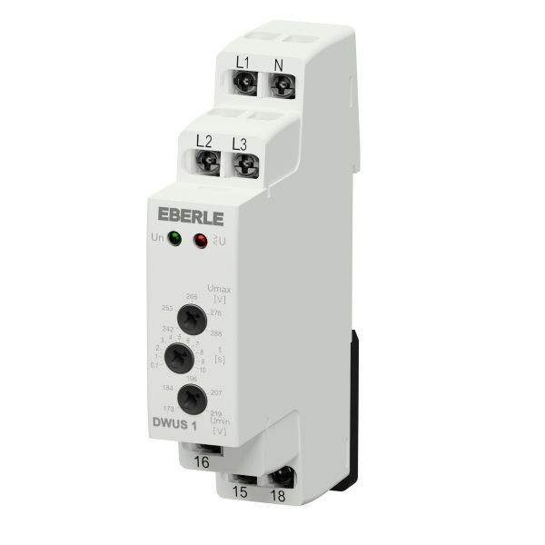 Drehstrom-Spannungswächter mit N-Überwachung überwacht Über- und Unterspannung. Das Relais überwacht neben seiner eigenen Versorgungsspannung das Vorhandensein des Neutralleiters, die Unter- und die Überspannung (getrennte Einstellung). Tritt eine Spannungsstörung auf, öffnet das entsprechende Relais (ein Unterspannungs- und ein Überspannungsausgang) nach Ablauf der vom Benutzer eingestellten Verzögerung. Falls die Versorgungsspannung unter 60% Un fällt, öffnet das Relais sofort ohne die Verzögerung abzuwarten. Fehlerzustandanzeige durch rote LED