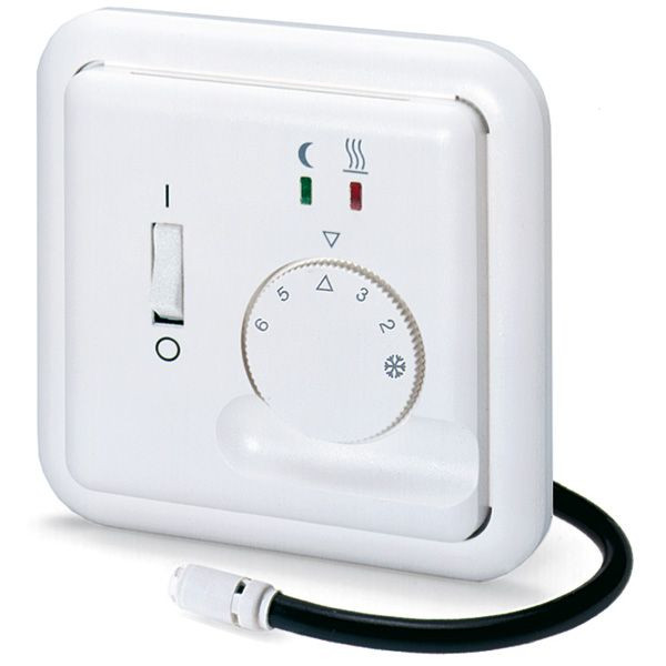 Regler elektronisch zur Erfassung der Raumtemperatur und Begrenzung der Bodentemperatur, für Unterputzmontage. Mit Lastunterbrechung nach EN 50559. Eignet sich für die Regelung von Elektro Fussboden- oder Elektrodirektheizungen. Temperaturabsenkung, wahlweise 3K oder 5K, über externe Schaltuhr möglich. Kontroll-Anzeigen: Regler fordert Wärme an / Absenkbetrieb. Netzschalter 2-polig. Bei Fühlerfehler Notbetrieb mit 30 % Heizen. Mit 4m Fernfühler (verlängerbar bis 50m) im Lieferumfang. Montage in 55er UP-Dose