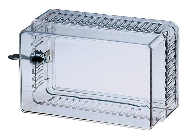 verschließbar, mit Lüftungsschlitzen, für Montage von Regelgeräten in Büroräumen, Werkhallen etc. Schutzgehäuse für Wandbefestigung. Abschliessbar gegen unbefugtes verstellen. Gehäuse ist mit Lüftungsschlitzen versehen. Geeignet für die Montage von Regelgeräten in Büroräumen, Werkhallen usw.