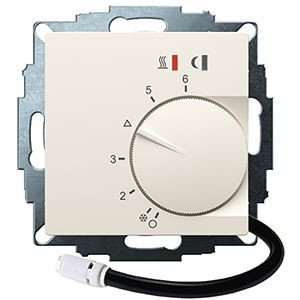Elektronisches Unterputzthermostat eignet sich für die Regelung von Elektro Fussboden- und Wand-/Decken Heizung. Regelung oder Überwachung von Temperaturen in Wohnräumen, Büros und Hotels. Passend in alle gängigen Schalterprogramme. Cremeweiß matt, 55x55 Abdeckung mit Knopf. Verschiedene Parameter können am Gerät eingestellt werden: Fernfühler, Limit, Temperaturabsenkung, Strom sowie Regelalgorithmus (Pulsweitenmodulation oder 2 Punkt Regelung). Bei Beschalten der Uhren-Klemme wird auf eine geringere Temperatur geregelt (einstellbar 3,5C / 6C / 9C). Mit LED-Statusanzeigen. Netzschalter (Ein/Aus) über Einstellrad bedienbar. Einstellbare Bereichseinengung im Einstellknopf als Heizkostenbremse. Eine unverlierbare Schraube mit Gewindeeinsatz zur Befestigung des Gehäusedeckels sowie praktische Steckklemmen erleichtert die Montage. Mit 4m Fernfühler im Lieferumfang. Montage in 55er UP-Dose.