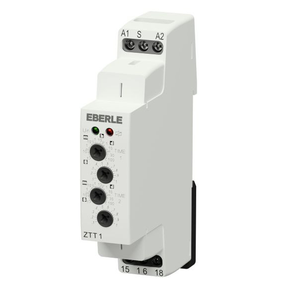 Taktgeber aus der Typenreihe ZT-Line. Asymmetrischer - Intervallschalter mit unabhängig einstellbarer Ein- und Ausschaltzeit. Die Anzeigen für den Zeitablauf, Schaltzustand und Betriebsspannung ermöglichen eine ständige Kontrolle über den Funktionszustand. 2 Zeitfunktionen: 1) Taktgeber Impulsbeginnend, 2) Taktgeber Pausenbeginnend. Getrennt einstellbare Impuls- und Pausenzeit, wahlweise Impuls- oder Pausenbeginn.