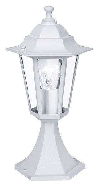 Die Außen-Sockelleuchte LATERNA 5 im Laternen-Design ist aus einem weißen Aluminiumguss-Körper gefertigt, der mit klaren Glasscheiben kombiniert wurde. Die Sockellampe ist spritzwassergeschützt (IP44) und ermöglicht einen bedenkenlosen Einsatz im Außenbereich. Dank des klassischen Designs fügt sich die Leuchte in verschiedenste Stile im Outdoor-Bereich ein und bietet eine passende Beleuchtung für beispielsweise Stadtvillen mit Altbau- oder Jugendstil-Charakter. Das abgebildete Leuchtmittel ist nicht im Lieferumfang enthalten. Geeignet ist die Außenlampe für jedes Leuchtmittel mit E27-Sockel.