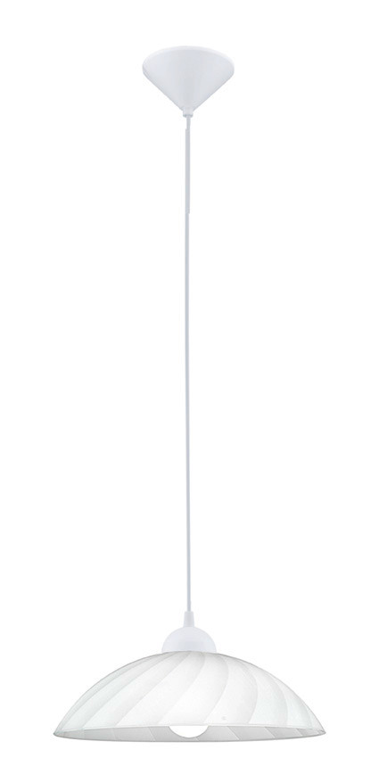 Die Pendelleuchte VETRO ist mit einem runden, satinierten Glas-Lampenschirm in Weiß mit Wellen-Optik gefertigt. Abgehängt wurde der Schirm von einem weißen Baldachin aus Kunststoff. Die Hängelampe fügt sich nahtlos in klassische Einrichtungen im Landhausstil ein und bietet eine passende Beleuchtung in der Küche oder im Esszimmer über dem Esstisch. Das Leuchtmittel ist nicht im Lieferumfang enthalten. Geeignet ist die Leuchte für jedes Leuchtmittel mit E27-Sockel.