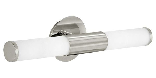 Die LED Spiegelleuchte PALMERA ist aus nickel-mattem Metall mit zwei röhrenförmigen Leuchtelementen aus opal-mattem Glas in Weiß gefertigt. Dank des Spritzwasserschutzes (IP44) ist ein bedenkenloser Einsatz im Badezimmer möglich. Die Wandlampe fügt sich nahtlos in moderne Einrichtungen ein und bietet eine stilvolle Beleuchtung im Bad über dem Spiegel. Die Leuchtmittel sind nicht im Lieferumfang enthalten. Geeignet ist die Leuchte für jedes Leuchtmittel mit E14-Sockel.