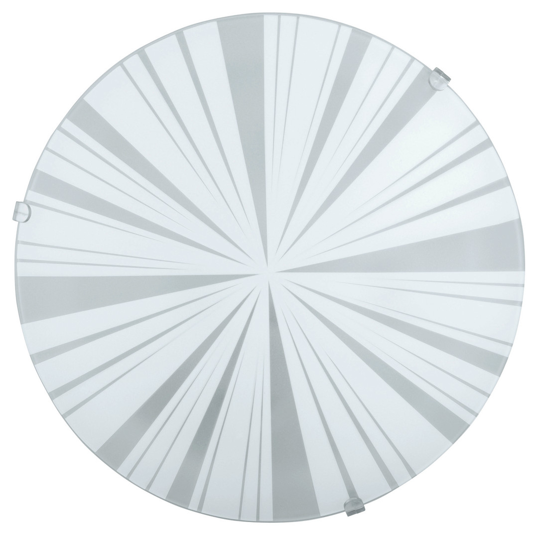 Die Deckenleuchte MARS 1 ist aus einer weiß-satinierten Glas-Abdeckung und einer runden Metall-Basis in Weiß gefertigt. Die gewölbte Form des Glas-Covers und die spitz-zulaufenden grauen Streifen sorgen für den charakteristischen Look der Leuchte. Dank des zeitlosen Designs fügt sich die Deckenlampe in verschiedene Einrichtungsstile ein und ist für jeden Wohnraum geeignet – egal ob in der Küche, im Wohnzimmer, Schlafzimmer oder Flur. Das Leuchtmittel ist nicht im Lieferumfang enthalten. Geeignet ist die Leuchte für jedes Leuchtmittel mit E27-Sockel.