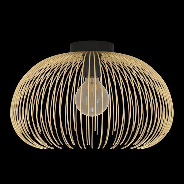 Die Deckenleuchte VENEZUELA ist aus einem goldfarbenem Draht-Lampenschirm und einer runden, schwarzen Metall-Basis gefertigt. Der Draht-Schirm ummantelt mit seiner harmonischen Rundung das innenliegende Leuchtmittel und lässt faszinierende Licht- und Schattenspiele entstehen, sobald die Leuchte eingeschaltet ist. Die Deckenlampe rundet moderne Einrichtungen ab und bietet eine stilvolle Beleuchtung für jeden Raum – egal ob in der Küche, im Wohnzimmer, Schlafzimmer oder Flur. Das abgebildete Filament-Leuchtmittel ist nicht im Lieferumfang enthalten. Geeignet ist die Leuchte für jedes Leuchtmittel mit E27-Sockel.