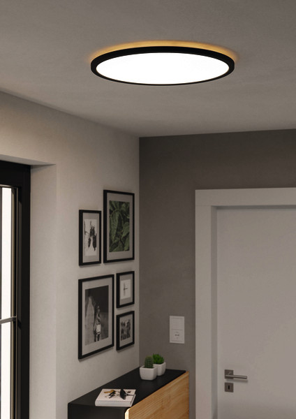 Smarte LED-Deckenleuchte Schwarz Ø50cm IP44 RGB/CCT I Rovito-Z, Kelvin Gesamt: 2700-6500, Gehäusematerial: Kunststoff, Gehäusefarbe: schwarz, Glas-/Schirmmaterial: Kunststoff, Glas-/Schirmfarbe: weiss, Schutzart: IP44, Leuchtmittel 1: im Lieferumfang enthalten, Fassung 1: LED, Funktionen: dimmbar, Farbwechsel, Smart Home, spritzwassergeschützt (IP44), Steuerung mit Fernbedienung, Steuerung über App, Energieeffizienzklasse (EEI): D