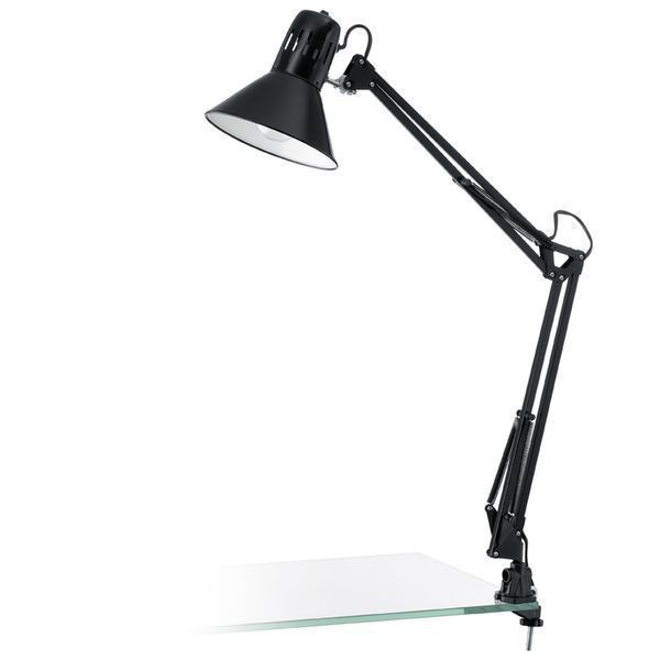 Die Klemmleuchte FIRMO ist aus schwarz-glänzendem Metall mit einem beweglichen Leuchtenarm sowie Leuchtenkopf gefertigt. Kombiniert wurde der Kopf mit einer weißen Innenseite. Die Klemme ist verstellbar und passt sich somit an verschiedene Tischplatten oder Regalböden an. Ein bequemes Ein- und Ausschalten ist über einen Wippschalter am Lampenkopf möglich. Die Klemmlampe lässt sich optimal als Leselampe nutzen und fügt sich nahtlos in moderne Einrichtungen im Industrialstil ein. Das Leuchtmittel ist nicht im Lieferumfang enthalten. Geeignet ist die Leuchte für jedes Leuchtmittel mit E27-Sockel.