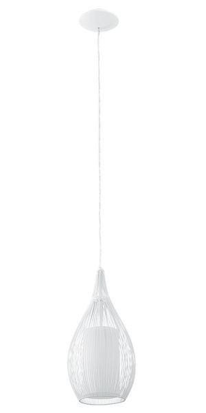 Die Pendelleuchte RAZONI ist aus einem organisch-geformten, weißen Draht-Schirm gefertigt, der mit einem innenliegenden weißen Glas-Zylinder kombiniert wurde. Durch den Lampenschirm entstehen faszinierende Licht- und Schattenspiele, sobald die Leuchte eingeschaltet ist. Die Hängelampe im Monochrom-Design eignet sich hervorragend für moderne und skandinavische Einrichtungsstile und bietet eine wohnliche Beleuchtung im Wohnzimmer oder im Esszimmer über dem Esstisch. Das Leuchtmittel ist nicht im Lieferumfang enthalten. Geeignet ist die Leuchte für jedes Leuchtmittel mit E27-Sockel.