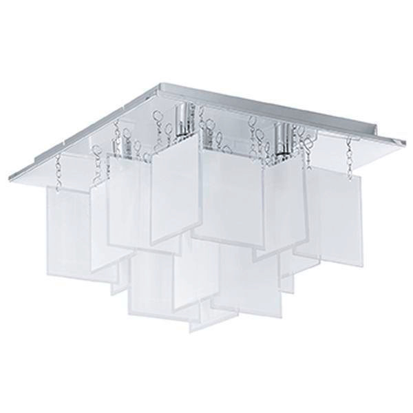 Die Deckenleuchte CONDRADA 1 ist aus einer Vielzahl an aneinandergereihten satinierten Glas-Pl?ttchen in Wei? mit einer quadratischen chromfarbenen Metall-Basis gefertigt. Die Deckenlampe f?gt sich mit ihrer Gr??e von 37 x 37 cm elegant in einen modernen Wohnstil ein und bietet eine stimmungsvolle Beleuchtung f?r jeden Raum ? egal ob im Wohnzimmer, Esszimmer oder Schlafzimmer. Die Halogen G9-Leuchtmittel sind im Lieferumfang enthalten und spenden angenehmes warmwei?es Licht.