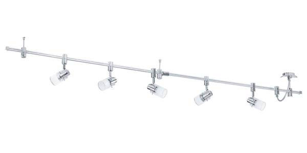 Die LED Deckenleuchte VILANOVA besteht aus einer Aluminium-Schiene, die mit drei Halterungen an der Decke angebracht werden kann. Kombiniert wird die Leuchte mit fünf beweglichen Spots aus chromfarbenem Metall sowie satiniertem und klarem Glas, die sich flexibel an der Schiene positionieren lassen. Die zeitlose Deckenlampe rundet moderne Einrichtungstrends ab und und bietet eine gezielte Ausleuchtung im Raum – egal ob in der Küche, im Wohnzimmer, Schlafzimmer oder Flur. Die abgebildeten GU10-Leuchtmittel sind im Lieferumfang enthalten und spenden angenehmes warmweißes Licht.