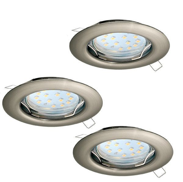 Das 3er Set der LED Einbauleuchte PENETO mit dem Durchmesser von 78 mm ist aus Metall in der Farbe Nickel-Matt gefertigt. Die mitgelieferten LED GU10-Leuchtmittel spenden angenehmes warmweißes Licht. Die Leuchte hat eine Einbautiefe von 115 mm und ermöglicht durch das zeitlose Design den Einsatz in jedem Wohnraum – egal ob in der Küche, im Wohnzimmer, Schlafzimmer, Flur oder Esszimmer. Für den Einbau wird ein Ausschnitt von Ø 65 mm benötigt.