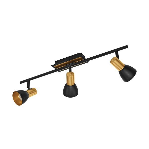 Die LED Deckenleuchte BARNHAM ist aus einem geradlinigen Metall-Körper in Schwarz gefertigt, der mit einer kupferfarbenen Dekor-Platte kombiniert wurde. Die kupferfarbenen Enden der drei schwarzen Spots runden das Design gekonnt ab. Zudem sind die Innenseiten der beweglichen Schirme in kupferfarben gehalten und strahlen das warmweiße Licht gezielt in den Raum. Der Deckenspot im modernen Design bietet eine optimale Beleuchtung – zum Beispiel in der Küche, im Wohnzimmer, Schlafzimmer oder Flur. Die LED GU10-Leuchtmittel sind im Lieferumfang enthalten.