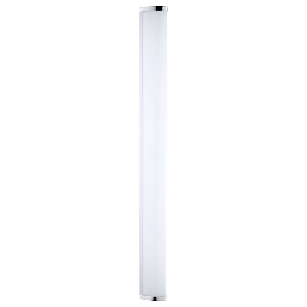 Die LED Wandleuchte GITA 2 ist aus chromfarbenem Metallguss mit einer Leuchtfläche aus weißem Kunststoff gefertigt. Die Wandlampe fügt sich mit ihrem modernen Dreiecks-Profil und ihrer Länge von 90 cm nahtlos in verschiedene Einrichtungen ein und bietet eine zeitlose Beleuchtung im Bad über oder neben dem Spiegel. Die integrierten LEDs spenden neutralweißes Licht. Dank des Spritzwasserschutzes (IP44) ist ein bedenkenloser Einsatz im Badezimmer möglich.