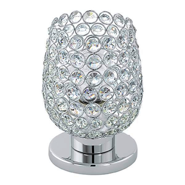 Die Tischleuchte BONARES 1 ist aus chromfarbenem Metall mit einem runden Lampenschirm aus einer Vielzahl an aneinandergereihten, klaren Kristallen gefertigt. Durch die wertigen Kristall-Elemente entsteht ein funkelndes und edles Erscheinungsbild, sobald die Leuchte eingeschaltet ist. Ein bequemes Ein- und Ausschalten der Leuchte ist ?ber einen Kabelschalter m?glich. Die elegante Tischlampe f?gt sich in den modernen Wohnstil ein und bietet eine stilvolle Beleuchtung im Schlafzimmer auf dem Nachttisch, im Wohnzimmer, Esszimmer oder im Flur auf dem Sideboard. Das Leuchtmittel ist nicht im Lieferumfang enthalten. Geeignet ist die Leuchte f?r jedes Leuchtmittel mit E27-Sockel.