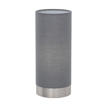 Die Tischleuchte PASTERI ist aus einem zylinderförmigen Textil-Schirm in Grau mit einem nickel-matten Metallfuß gefertigt. Die Tischlampe fügt sich mit ihrem schlichten Design nahtlos in nahezu jeden Einrichtungstrend ein. Ein bequemes Ein- und Ausschalten ist über einen Schalter am Kabel möglich. Sie sorgt für eine gemütliche Beleuchtung in Ihrem Wohnraum – egal ob im Schlafzimmer auf dem Nachttisch oder im Wohnzimmer auf dem Sideboard. Das Leuchtmittel ist nicht im Lieferumfang enthalten. Geeignet ist die Leuchte für jedes Leuchtmittel mit E27-Sockel.