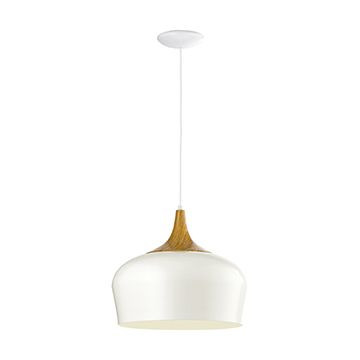 Die Pendelleuchte OBREGON ist mit einem organisch-geformten Metall-Lampenschirm in Cremefarben und einem dekorativen Holzaufsatz in Eiche gefertigt. Abgehängt wurde der Schirm von einem runden, weißen Metall-Baldachin. Die Hängelampe bietet eine wohnliche Beleuchtung im Wohnzimmer oder im Esszimmer über dem Esstisch. Das Leuchtmittel ist nicht im Lieferumfang enthalten. Geeignet ist die Leuchte für jedes Leuchtmittel mit E27-Sockel.